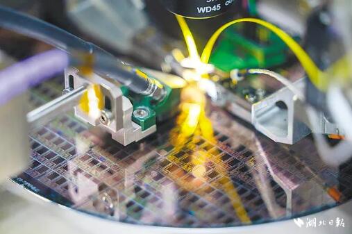 国家信息光电子创新中心无尘实验室内,一片晶圆正被切割成一颗颗芯片。(湖北日报全媒记者 魏铼 摄)