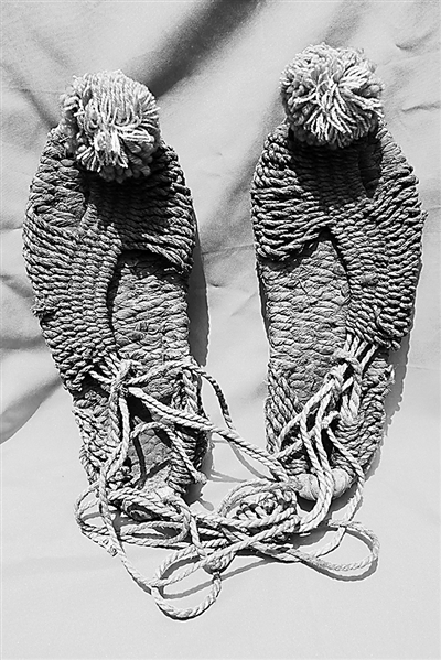 谢志坚长征途中穿过的绣球草鞋。中央红军长征出发纪念馆藏
